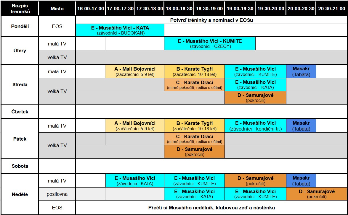 ROZPIS TRÉNINKŮ: